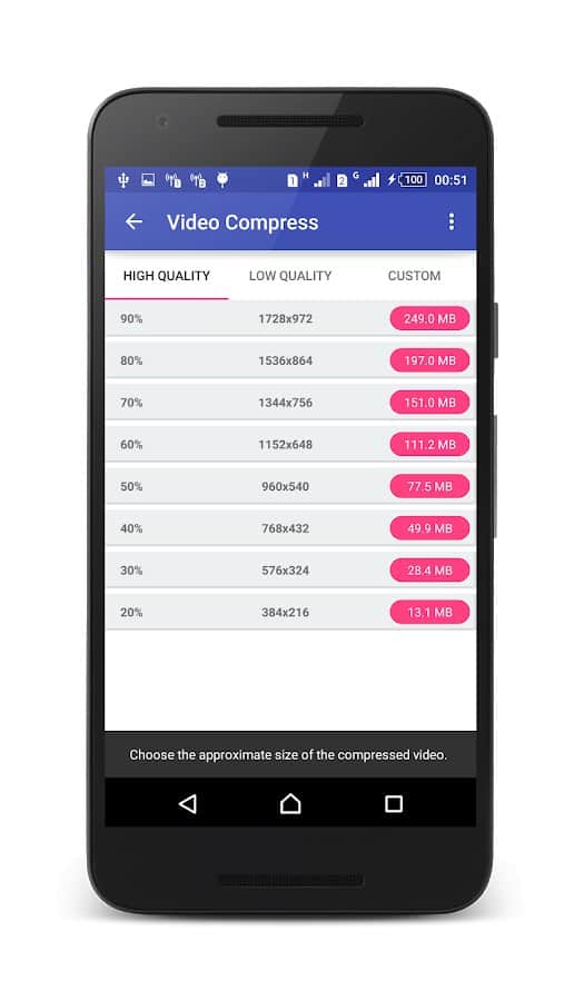 За допомогою програми "Стиснення Відео" ви зможете за кілька кліків на екран стиснути потрібне відео і зберегти на свій пристрій. Файлом можна поділитися в будь-якій соціальній мережі або месенджерах зі своїми друзями. Ви зможете вибрати потрібну якість дозволу, звільнити більше місця в пам'яті телефону, насолодитися зручними функціями і інтуїтивним інтерфейсом, простотою застосування. Додаток підтримує всі формати відео, організовує процес управління ними, відображаючи їх у галереї пристрою. Конвертуйте відео в mp3, виймайте субтитри, дивіться актуальні акції і спецпропозиції.