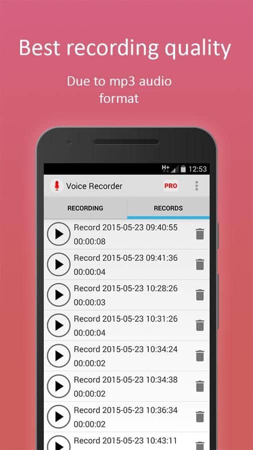 Voice Recorder – диктофон на android с полным набором функций для записи речи и других звуков. Диктофон – это одна из немногих приложений, которыми пользовались подавляющее количество пользователей мобильных девайсов. Такой естественный интерес вызван тем, что наша память не способна воспринимать и запоминать большие потоки информации, вот тогда на помощь и приходит диктофон. Запись лекций на уроках или парах, зачитывание своих мыслей, запись голосовых заметок и другие способы использования диктофона доступны в этом приложении. Приложение может работать при выключенном дисплее. Запись ведётся в популярный формат mp3, так что с прослушиванием проблем ни когда не возникнет.