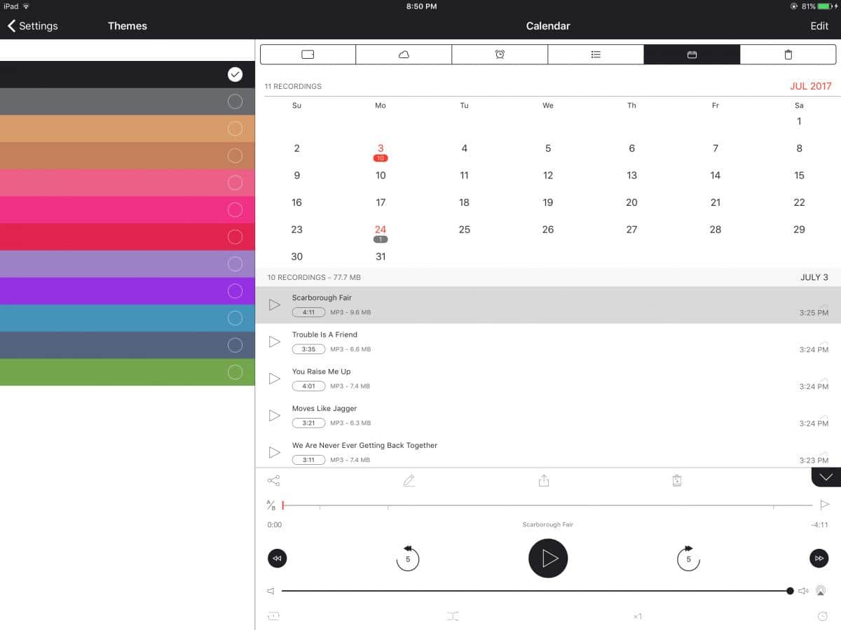 Voice Recorder - Цей додаток було визнано величезною кількістю користувачів як одне з кращих для запису звуку і голосу. Головна його особливість в тому що при всій своїй простоті воно вмістило в себе просто величезна кількість різних функцій. Ви можете налаштовувати гучність звуку, комбінувати кілька джерел звуку і швидко ділитися всіма отриманими результатами з допомогою хмарного сховища. Ну або просто зберігати аудіо в хмарне сховище безпосередньо, таким чином ви ніколи не втратите потрібні вам аудіо файли.
