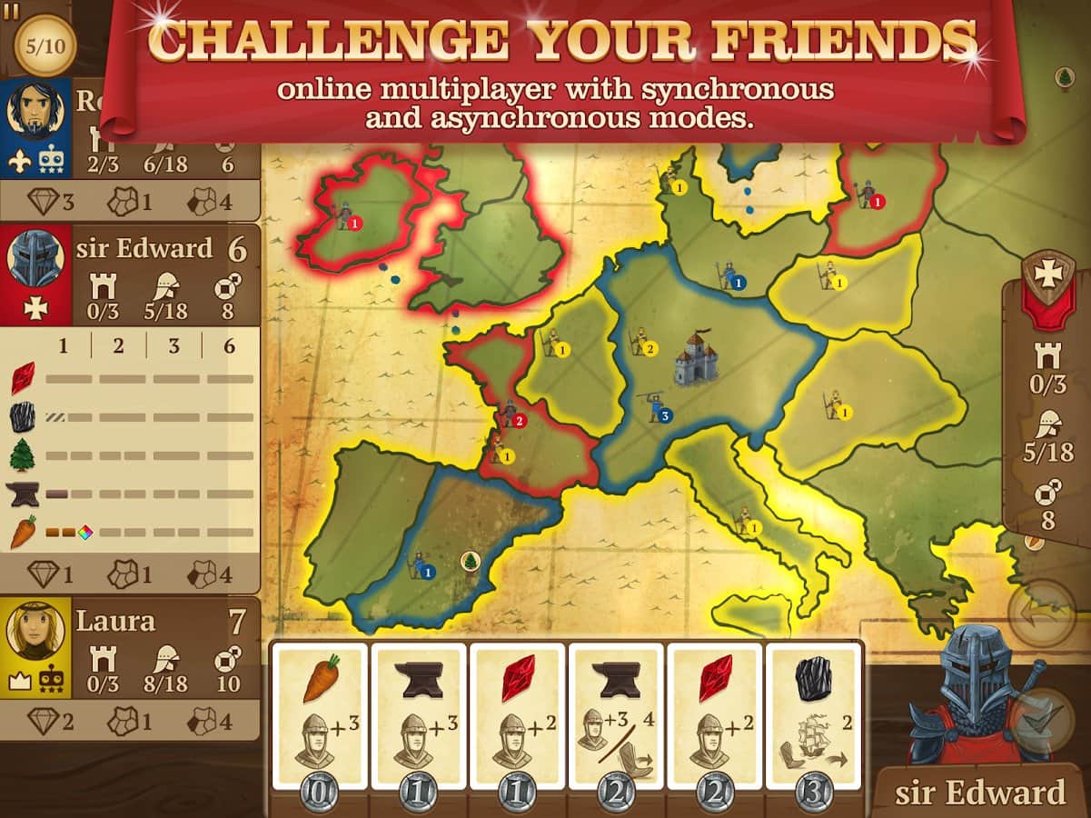 Восьмихвилинна Імперія (Eight-Minute Empire) – настільна гра на андроїд, де ви будете будувати свою імперію за вісім хвилин. У цій грі вашим завданням буде зібрати свою непереможну армію, командувати військами і битися з іншими гравцями знищуючи їх замки. Все це ви будете робити для того, щоб послабити своїх супротивників і як можна краще посилити свою імперію. У цю гру можуть грати одночасно від 2 до 5 гравців, які будуть вибирати карти і виконувати різні дії. Дослідіть величезну мапу ігри і захоплюйте все більший контроль, набираючи очки.