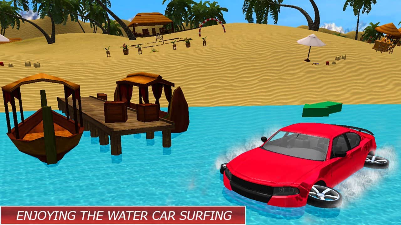 Water Surfer Car Driving – сідайте за кермо спортивного автомобіля і проведіть його за все трасах гри. У цій грі ви будете керувати незвичайним автомобілем, який здатний пересуватися як по суші, так і по воді. Ведіть свій автомобіль по піщаному пляжу і пройдіть всі контрольні точки, при цьому обходячи всі перешкоди на шляху. Перетинайте піщаний пляж і насолоджуйтесь красивими видами будиночків і пальм, а також виводите свій автомобіль на воду, катаючись по хвилях. Слідуйте за стрілкою, яка вкаже вам шлях і відкривайте для себе нові автомобілі, які вміють унікальний дизайн і технічні характеристики.
