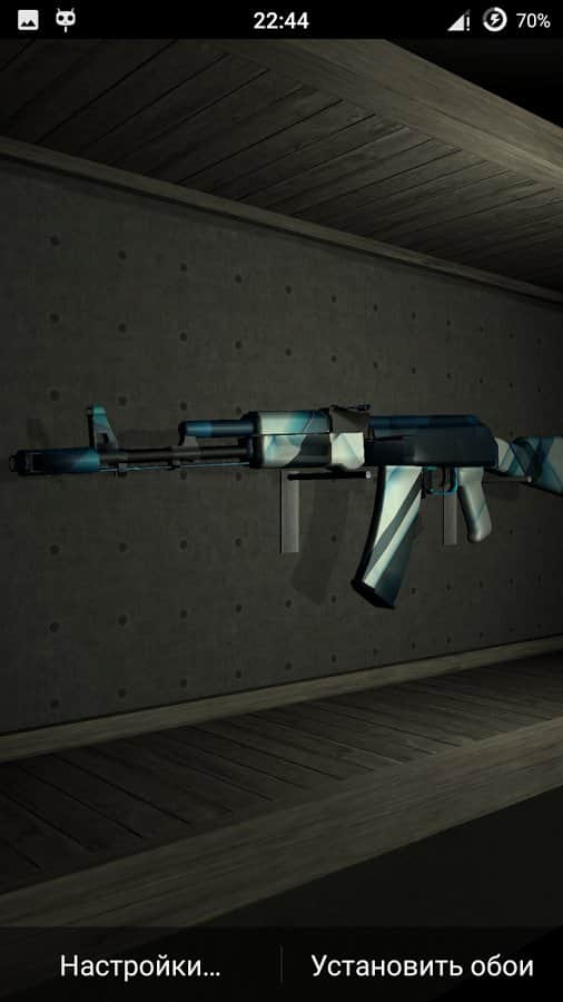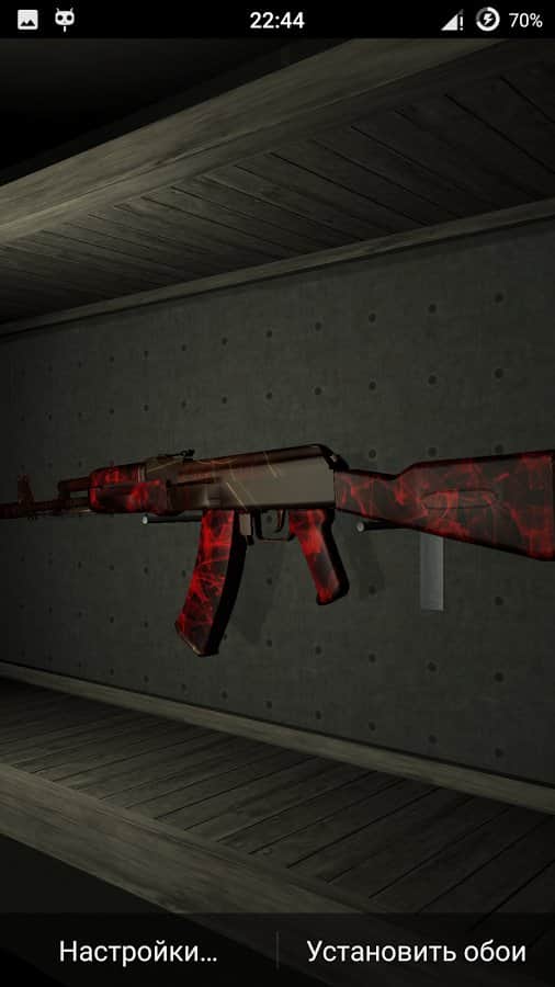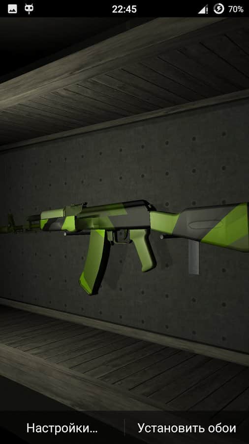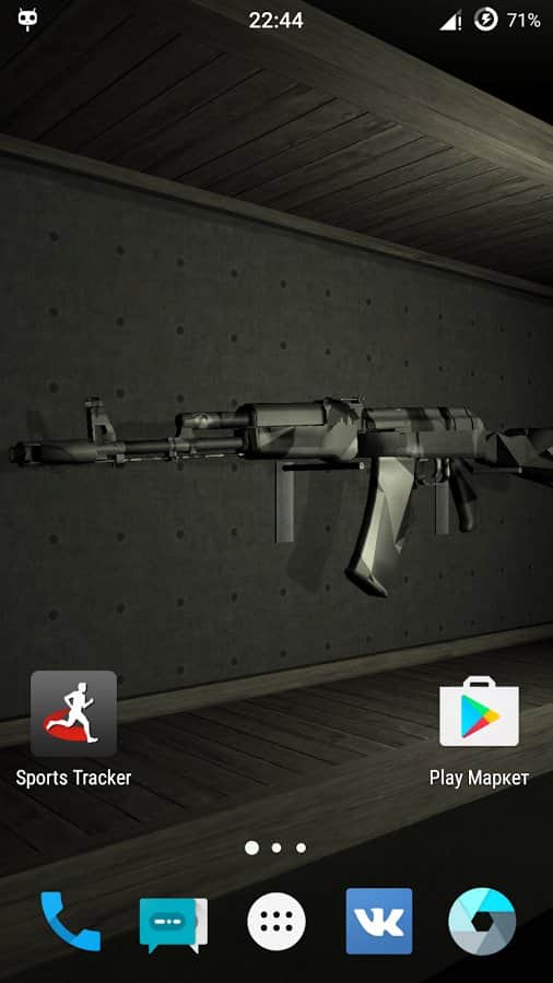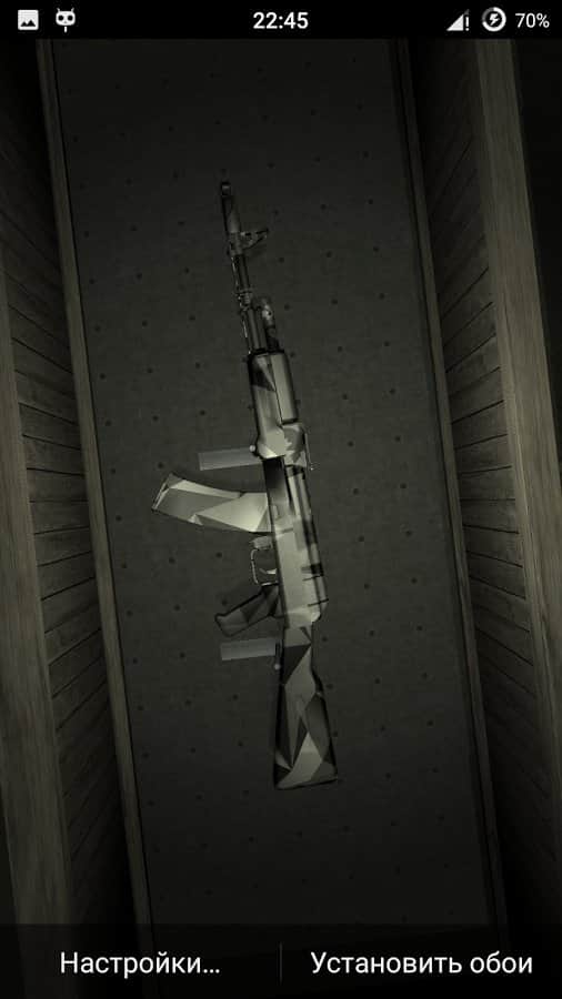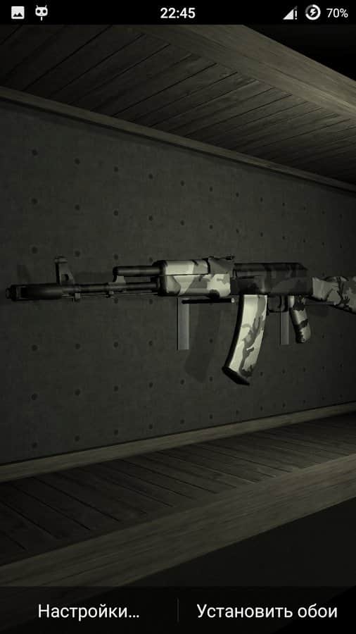 Weapon AK-74 Live Wallpaper – живі шпалери міцно зайняли свою нішу в android-гаджетах для любителів індивідуалізації свого смартфона , а зокрема його робочого столу. Зараз потужності девайсів вистачає, для того щоб без гальм тягнути практично будь-які живі шпалери. Представляємо вашій увазі шпалери виконані за допомогою ігрового движка Unity і присвячені автомату Калашникова AK-74 в різних колірних поєднаннях. Для їх установки потрібно зайти в «Меню», далі в «Шпалери» і «Живі шпалери» в цьому розділі вже знайти необхідні шпалери.
