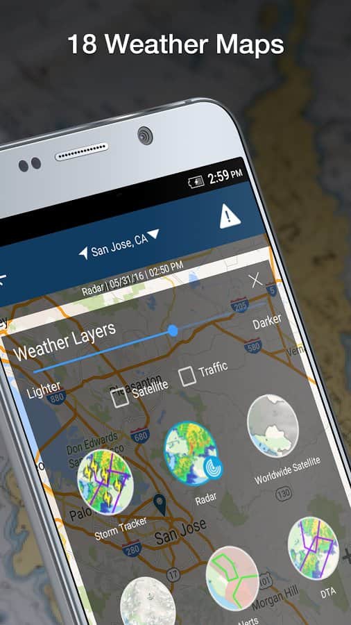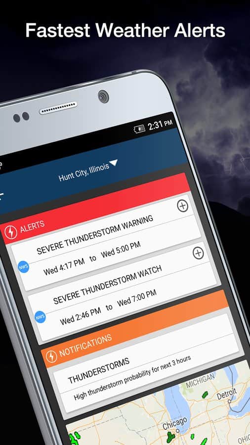 Weather by WeatherBug - Цей погодний жук зможе показати вам все в найдрібніших подробицях. З допомогою цього простого додатка ви дізнаєтеся погоду в будь-якій частині земної кулі. Найцікавіше в ньому те, що погоду можна буде побачити просто на карті світу! Перемикаючись між різними режимами ви зможете подивитися на потоки вітру, тиск і перепади температури, а так само на можливі опади та ще багато іншого. Проста в управлінні і з красивим інтерфейсом це додаток по праву називається одним з кращих.
