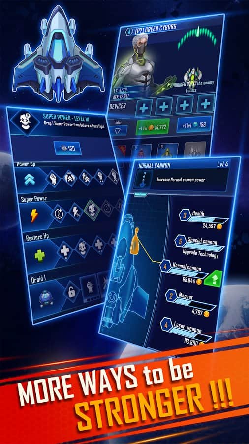 WindWings: Space shooter, Galaxy attack (Premium) – космічний шутер, де ви будете керувати величезним кораблем і підкорити космічні простори. Включайте режим пригоди і заводьте двигуни. На шляху вам будуть зустрічатися вологи і суперники, які мріють встановити своє панування, отстреливайтесь і застосовуйте атаки, нападайте першим і застосовуйте свою тактику. Прокачуйте корабель, встановлюйте потужне зброя і сучасні ракетні установки, ведіть бої і здобуває перемогу, просто управляйте процесами, торкаючись пальцем до екрану.