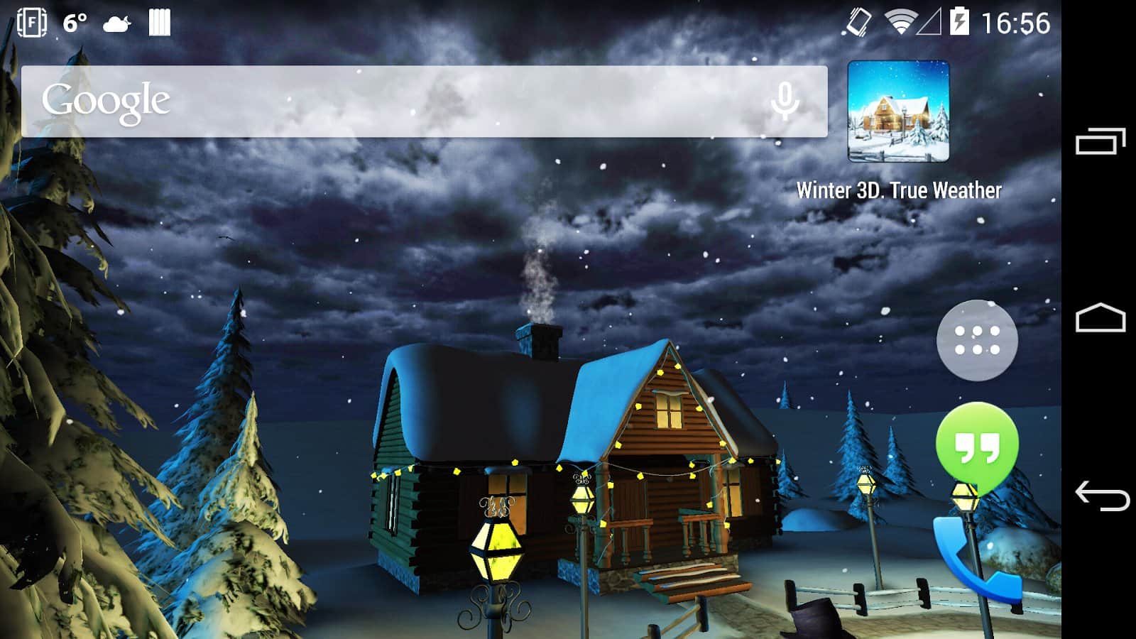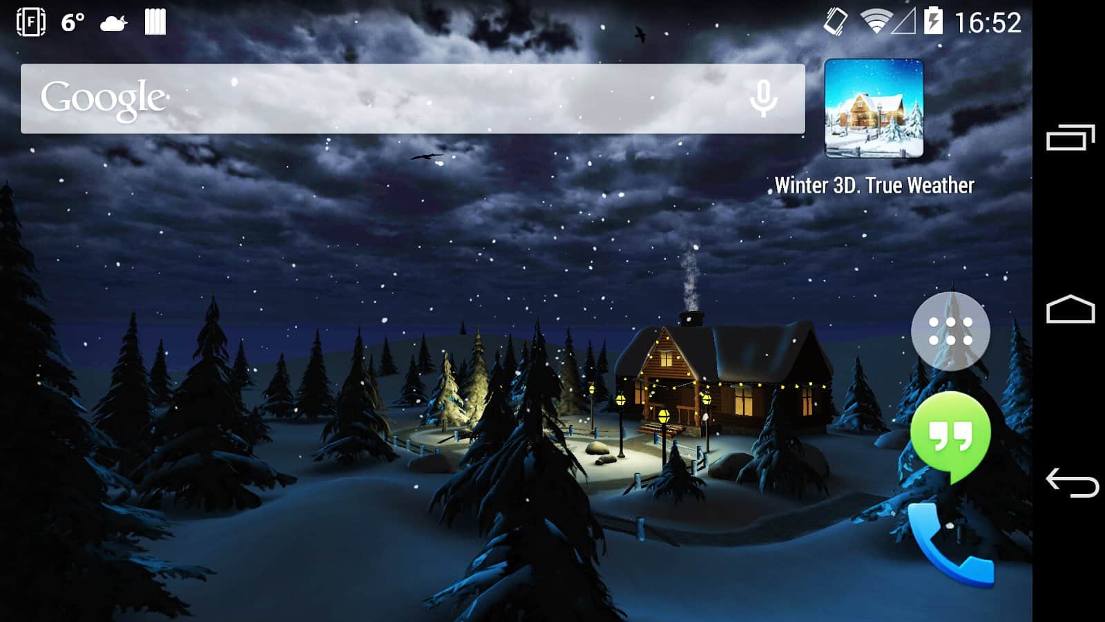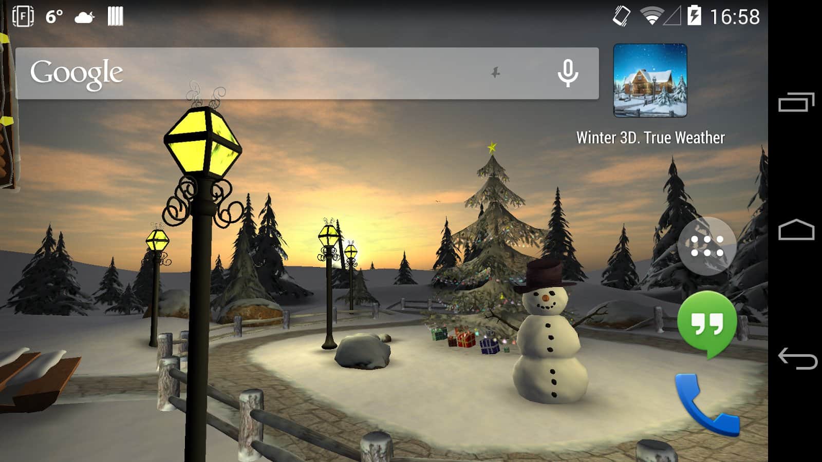 Winter 3D, True Weather – новогодние живые обои на андроид, будут как никогда кстати в преддверии нового года. Домик зимой, который уже украшен и подготовлен к новому году. Возле домика стоит нарядная ёлочка и снеговик. Обои могут похвастаться приятной красивой графикой, которая будет радовать обладателей этих обоев.