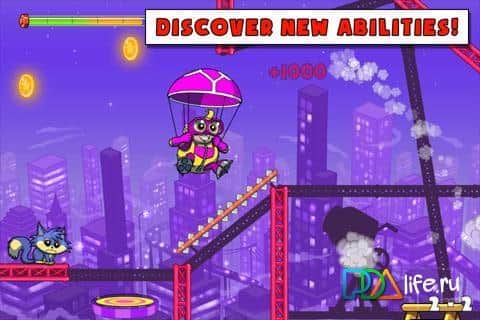 Сколько вы знаете супергероев? Бэтмен, супермен, человек-паук, агент 007 и пр...И что они делают? Спасают человечество от катастроф и злодеев. А как быть с животными, например, с котам? Им тоже нужна помощь! И вот обычный житель маленького городка по имени Даррел решается пополнить армию супергероев. Однако спасать он будет кошек! Он шьет себе костюм и смело принимается за дело! Сколько впереди неудач и провалов знаете только вы, путь героя тернист и опасен. Есть 70 уровней, в каждом из которых в должны запустить главного героя так, чтобы он собрал все бонусы и 3 звезды и спас в конечном итоге очередного кошака! По мере удачного прохождения уровней будут открываться все новые и новые вспомогательные предметы: парашют, крюк и др.сверхспособности. Уровень за уровнем в игре Wonder Pants на Андроид вы все ближе к званию суперегроя, а пока по мере прохождения ведется рассказ о вас в виде мультяшного комикса.