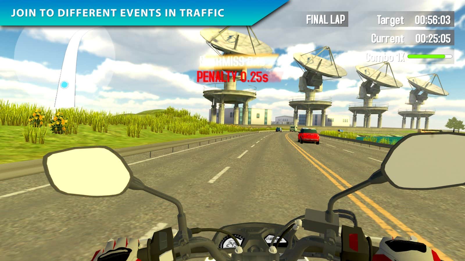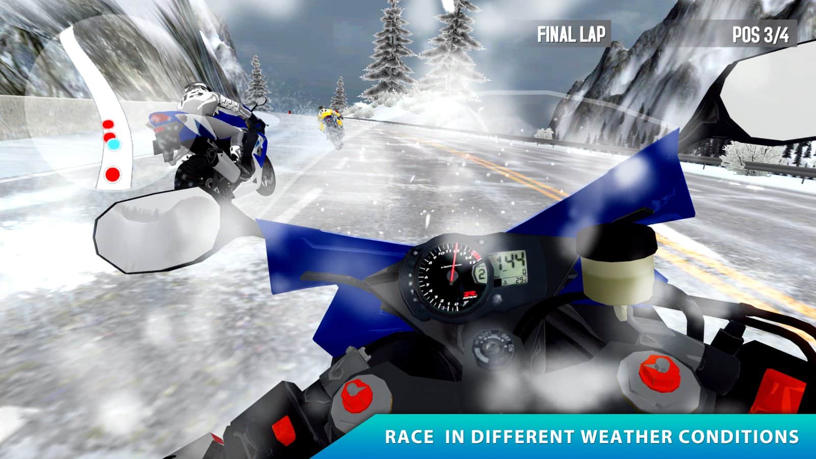 WOR - World Of Riders – керуйте швидкісним мотоциклом у цій грі для андроїд, в компанії суперників. Сідайте за кермо спортивного мотоцикла і промчитеся по небезпечним і звивистих трасах намагаючись прийти до фінішу першим. Відчуйте себе справжнім мотогонщиком в цій грі і випробуйте море адреналіну від проходження небезпечних поворотів і маневруючи в потоці нескінченного трафіку. Спробуйте подолати трасу за мінімальний проміжок часу і встановити свій рекорд у цій грі. На зароблені гроші придбайте нові спортивні мотоцикли, які порадують вас унікальними характеристиками. У грі представлено 11 неповторних мотоциклів, 12 трас кожна з яких унікальна, різні режими гри і легке управління.
