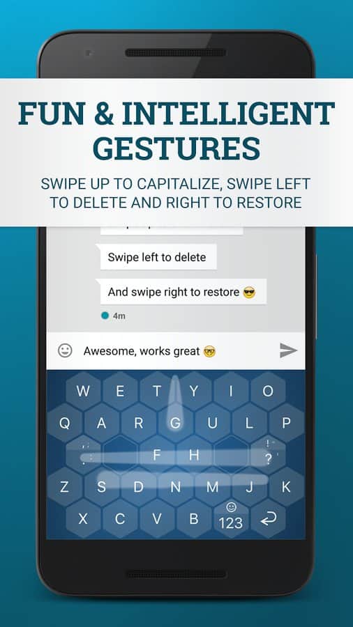 WRIO Keyboard (+Emoji) - Проста але дуже зручна клавіатура для вашого смартфона. У ній ви знайдете просто безліч додаткових функцій, і крім того ви зможете змінювати форму ваших кнопок, якщо раптом вам важко з ним потрапляти зробіть їх більше, або ж навпаки менше. Ця клавіатура була визнана однією з кращих, тому що вона дуже зручна, і набирати на ній текст дуже легко і швидко. Так само не варто забувати про можливості кастомізації, ви завжди зможете налаштувати зовнішній вигляд клавіатури, змінити тему чи колір на свій розсуд.