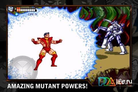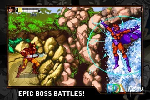 X-men-іграшка часів приставок за коміксом Люди-Х. Класичний платформер, в якому команда героїв - Циклоп, Колос, Россомаха, Шторм та інші - будуть протистояти силам зла - від Піро до Магнетто! Якщо захочете зіграти з друзями он-лайн-і це можливо-до 4х гравців через Wi-Fi, а також не забувайте про OpenFeint і радійте своїм досягненням! Бийтеся не на життя, а на смерть і поповніть свою колекцію перемог ще кількома колоритними битвами! Багато рівнів і 4 режими складності-знайдіть свою битву!