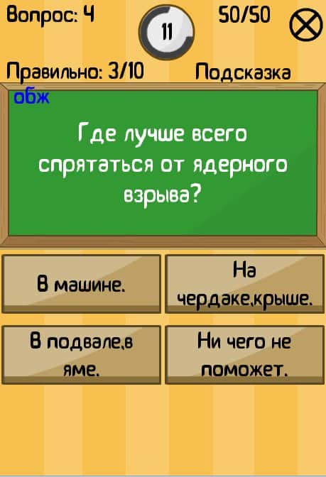 Я розумник - версія Мега - Приготуйтеся до справжнім випробуванням розуму! Пройдіть захоплюючі вікторини, в яких вам належить згадати шкільну програму з усіх предметів, а також проявити всю свою логіку і кмітливість. По закінченні випробування ви побачите свої оцінки в щоденнику, як після закінчення школи. Гра сподобається всім допитливим людям і любителям вікторин. Також в грі присутній міні гра, яка допоможе вам краще рахувати в умі.