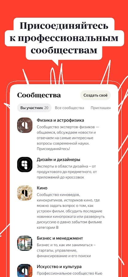 В "Яндекс.Кью" можна не тільки створювати і ділитися унікальним контентом, але і обмінюватися важливою і корисною інформацією. Особливості: