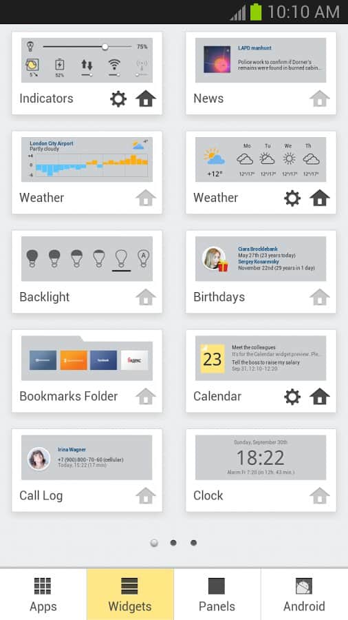 Приложение автоматически распределяет по экранам виджеты и программы