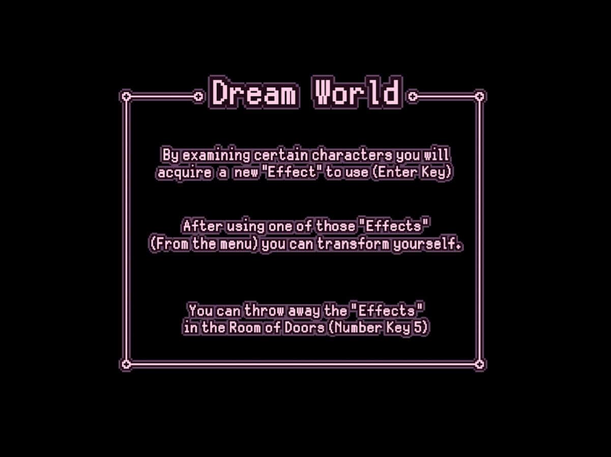 Yumenikki - захоплююча пригодницька гра в якій вам разом з головним героєм належить відправитися в захоплюючу подорож у світ її снів, мрій і фантазій. У свою чергу ігровий процес являє собою поєднання квесту і ролевки. Окремо варто відзначити оригінальну графіку в стилі ретро яка відмінно передає задуману атмосферу, а продумана сюжетна лінія здатна на довгі години затягнути вас в ігровий процес.