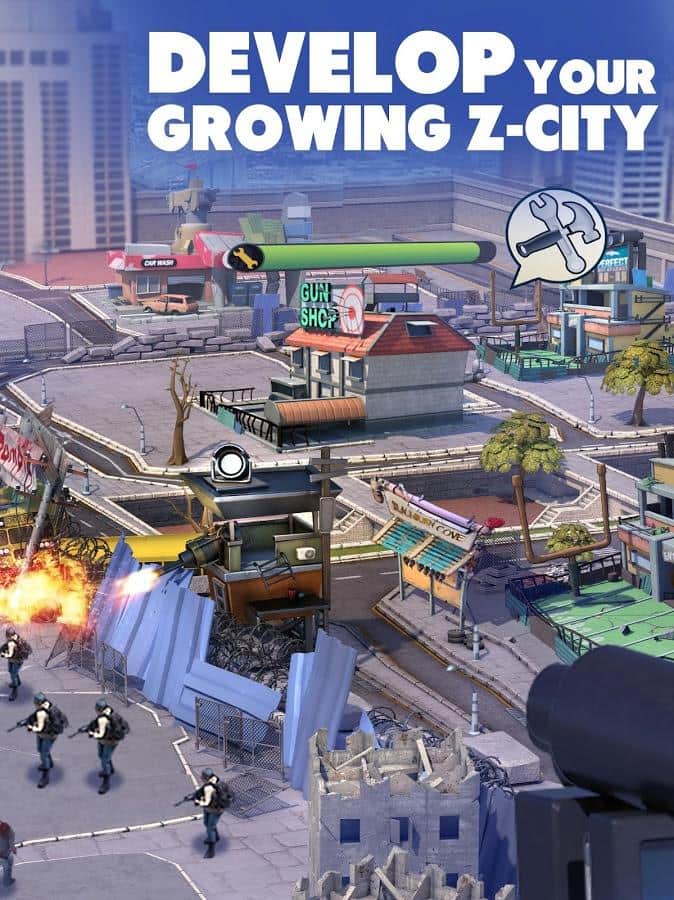 Z City – стратегія на android, яка перенесе вас у світ після зомбі-апокаліпсису. У цій грі ви візьмете під своє командування невелике місто і будете будь-якими шляхами захищати його від зомбі. Зробіть все що від вас залежить, щоб врятувати людську цивілізацію від знищення. Будуйте захисні споруди, зводите величезні барикади і збирайте армію солдатів і бійців. Тренуйте свою армію і приручати зомбі-вихованців, які допоможуть вам у боях. Об'єднуйте свої сили з друзями і робіть набіги на бази суперників. У вашому розпорядженні будуть також численні бойові одиниці і зброю.