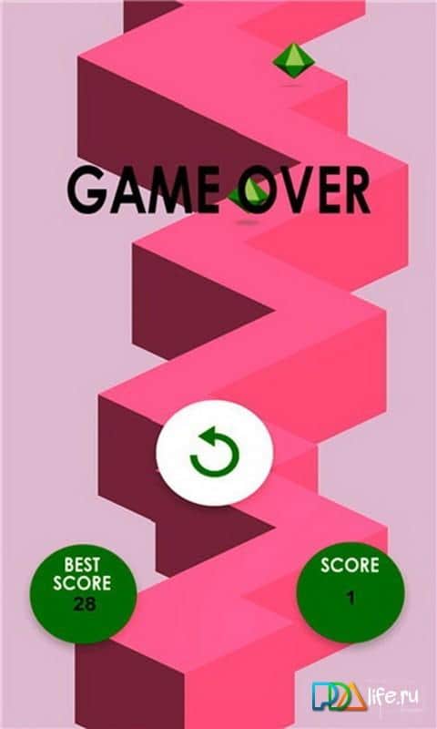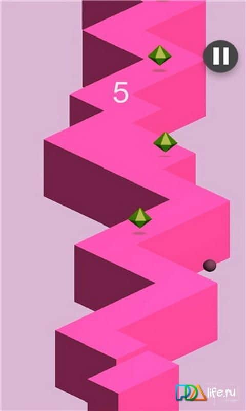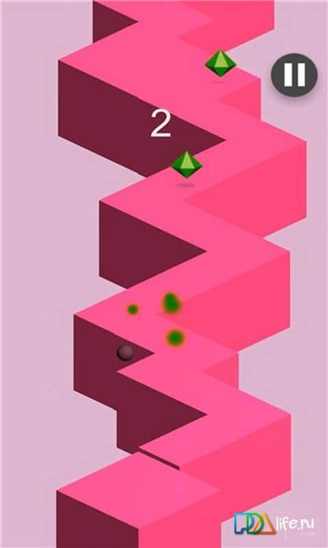 ZaigZiag – хардкорних гра в якій вам належить переміщати м'ячик на доріжці, що складається з зіг загов. За допомогою одного дотику до екрану телефону або планшета ви будете керувати кулькою так щоб він проходив всі небезпечні повороти і не падав вниз. По дорозі збирайте кристали і набирайте достатню кількість очок щоб можна було позмагатися зі своїми друзями. Перевірте свою спритність у цій грі і подивіться, як далеко ви зможете зайти. Намагайтеся не пропускати жодного повороту і не падати за краї зіг зага. Це захоплююча гра, яка дуже легка в управлінні, але складна в освоєнні.