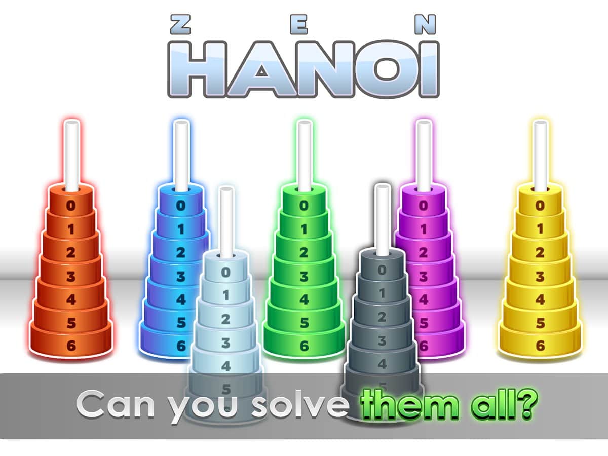 Zen Hanoi - Логічні ігри - Це логічна гра, одна з варіантів інший набагато більш відомої гри - Вежі Ханоя. Вам потрібно зібрати вежі з дисків однакового кольору, розташованих за номерами в порядку зростання. Просуваючись вперед по рівнях, кожен наступний буде набагато складніше попереднього. Якщо ви застрягли на якомусь складному рівні, то можете скористатися однією з п'яти підказок, доступних в якості бонусів. Zen Hanoi - це ідеальне проведення часу для любителів усіляких головоломок і загадок! Якщо ви один з таких гравців, то ця гра тільки для вас.