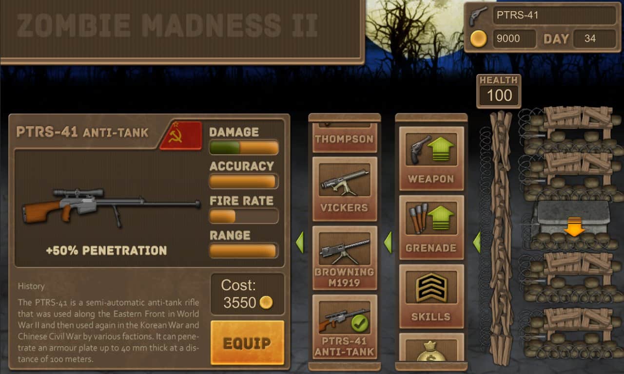 Zombie Madness - Неплохая аркадная стратегия в стиле защиты башни на андроид. Вам предстоит сдерживать оборону перед зомби, которые хотят добраться до вас, и съесть. Игра имеет простую графику, но не смотря на это она очень увлекательна, и имеет множество преимуществ. У вас есть возможность покупать различное оружие, улучшать его и юниты. Тем самым свою оборону вы можете развивать в разных направлениях.