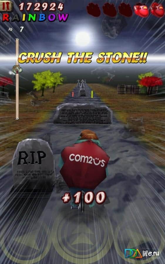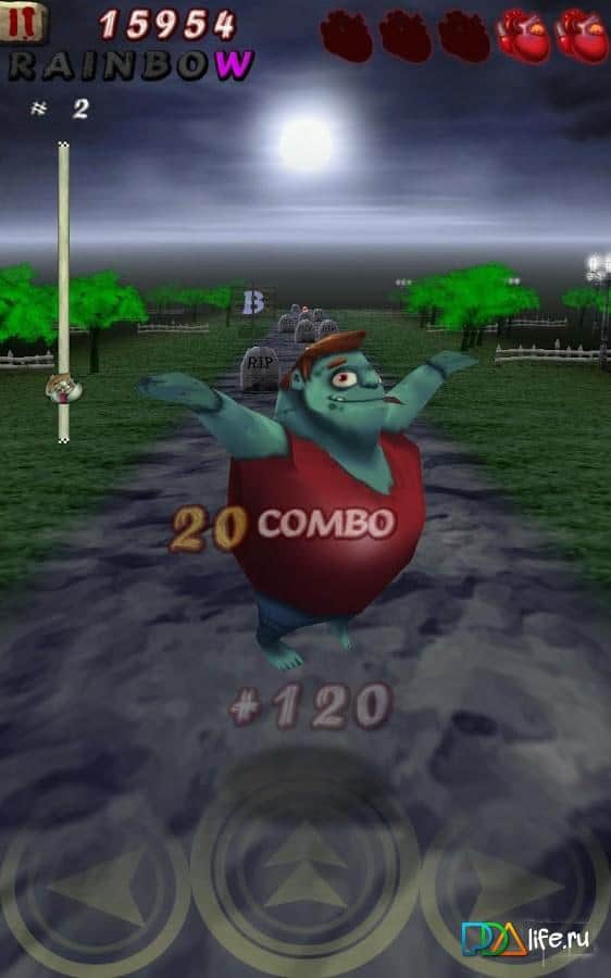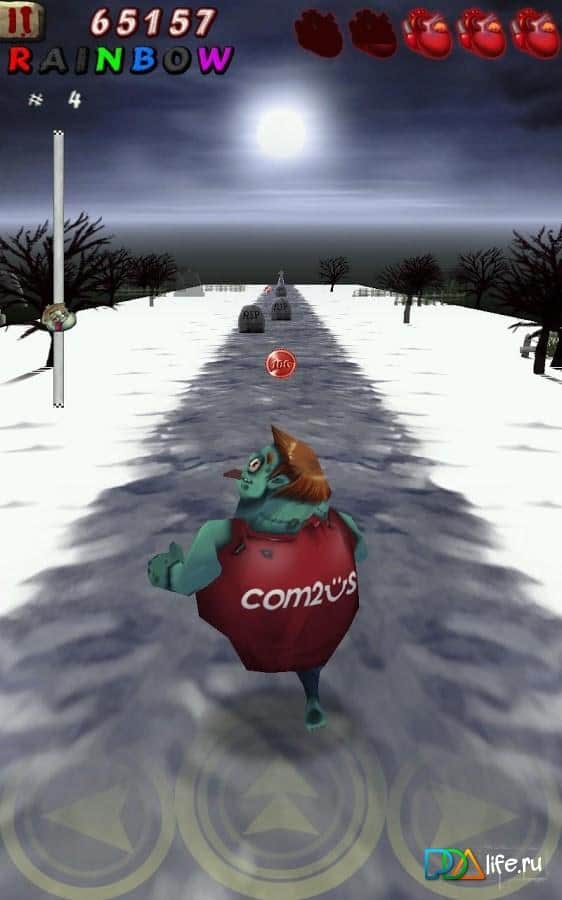 Zombie Runaway - це гра жанру раннер на Андроїд. Вам належить рятуватися втечею від натовпу людей. І всупереч стереотипу, що зомбі - це повільні і незграбні дії, вам належить управляти бігом досить спритного спортсмена, який аж ніяк не хоче зупинятися. Отже, біжимо і уникаємо перешкод на шляху, будь то могили, хрести різних розмірів. Деякі можна перестрибнути, а деякі доведеться оббігати, інакше ніяк. По дорозі вас також чекають бонуси, що продовжують або дають життя, а також прискорювачі. Крім того, в грі 2 режими - аркада і виконання завдання на час. І той і інший режим подарує вам чимало годин справжнього задоволення! Удачі в забігу! Завантажити гру Zombie Runaway безкоштовно можна і google маркет!