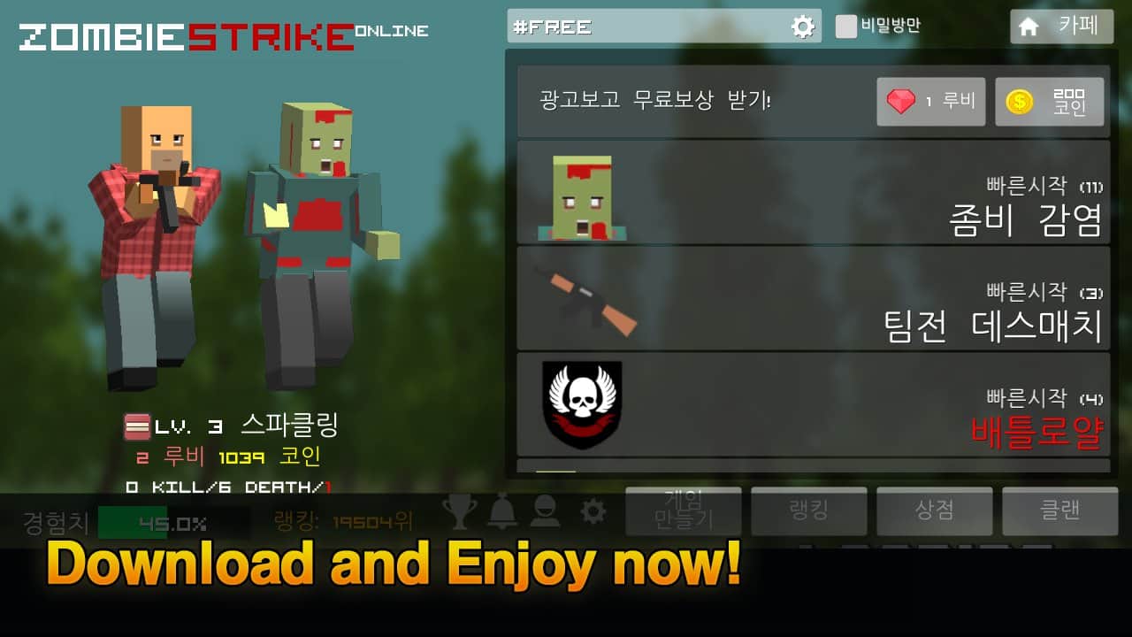 Zombie Strike Online: FPS – онлайн шутер для андроїд, де дії будуть відбуватися від першої особи. У цій грі ви візьмете в руки зброю і будете переміщатися по рівнях і знищувати зомбі або своїх суперників. Дослідіть блоковий світ цієї гри і шукайте собі укриття, а також не забувайте стежити за радаром, який показує знаходження найближчої до вас цілі. Одночасно в цю гру можуть грати до восьми осіб. Грайте зі своїми друзями і застосовуйте для знищення ворога різноманітну зброю, таке як: штурмова або снайперська гвинтівка, дробовик або вогнемет. Постарайтеся вижити в цій грі і досягти рекордних результатів.