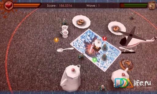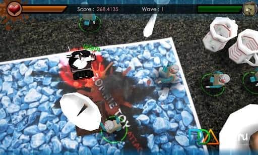 Zombie Toy Attack - какой ужас - зомби апокалипсис настиг и территорию игрушек. Ваши старенькие и бодрые игрушки заражены страшным вирусом зомбоопасности и представляют для ваших новых игрушек реальную угрозу. Скорее спасайте свой детский мир от нашествия зомби - уничтожайте зомбаков! В этом деле вам не помешает и помощь друзей - вы сможете сыграть с ними по Wi-Fi. А чтобы получить более яркие впечатления - распечатайте последнюю картинку - это даст ощущение дополнительной реальности!