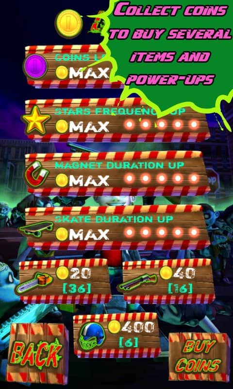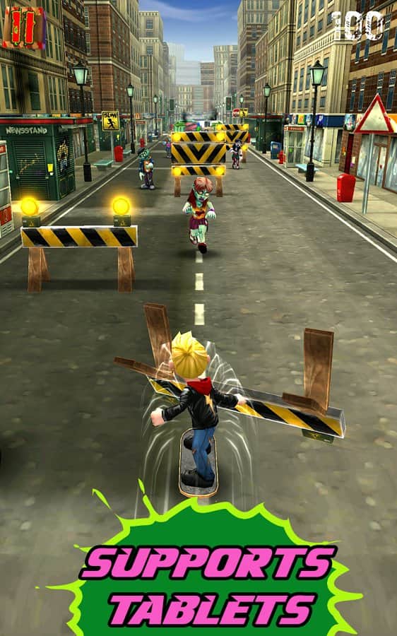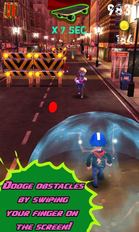 Zombies After Me! - Ваше місто захоплений голодними зомбі і ваша єдина мета - не бути з'їденими цими мерзенними монстрами. Пройдіть свій шлях через безліччю ходячих мерців з бензопилою і дробовиком. Використовуйте скейтборд і ваші акробатичні навички, щоб пройти всі перешкоди і обійти вибухонебезпечні бочки, розкидані по всій території, по якій вам доведеться пройти. Збирайте монети, щоб купити кілька потрібних предметів і отримати бонуси у віртуальному магазині.