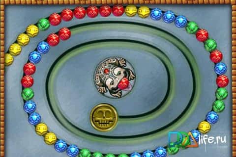 Zuma - це старенький, давно полюбився всім, захоплюючий гібрид Стрілялки на Samsung Wave S8500, S8530 в стилі Майя, що вимагає одночасно миттєвої реакції і точно спрямованих рухів, а також кмітливості, логіки, вміння стежити за ситуацією на всьому ігровому полі. А тепер трохи про саму гру! Ви керуєте такою милою жабою, з рота якої з'являються кольорові кульки. Вона сидить в центрі поля, по якому виписує хитромудру криву жолоб, що веде до люка. У цей жолоб на початку рівня викочується ланцюжок кульок, і ваше завдання-розстріляти їх до того, як вони досягнуть центру поля і зваляться в люк. Рухається ланцюжок вельми скоро, і вам знадобиться якийсь час для тренування...